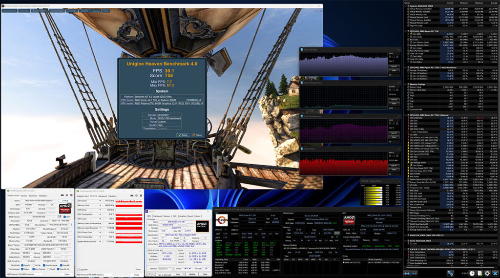 Testirajući ga kroz dobro poznate softvere koji ume da naprže mašinu ovaj mališan je sasvim solidno odgovorio, rezultati koje dobijamo su impresivni sobzirom na sve ugradjeno a i dimenzije, medjutim potrošnja i buka su na maximumu pa i o tome treba voditi računa. Naravno ovo je scenario u kojem će se retko koristiti ovaj PC ali sam morao da probam