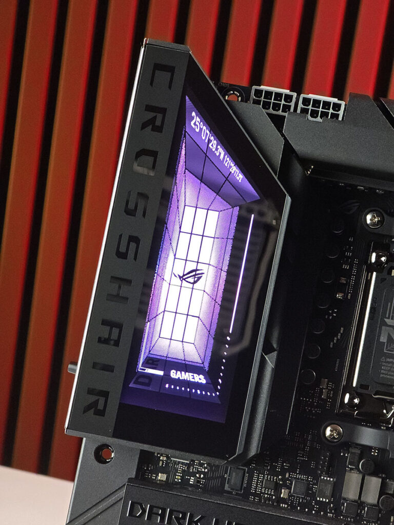 Najveća inovacija i Najzanimljiviji detalj je novi set pinova pored CPU socketa. ASUS je osmislio način da eliminiše višak kablova kod AIO hladnjaka i omogući direktno povezivanje pumpe, displeja i senzora. Ogroman plus — i potencijalni novi standard u budućnosti.