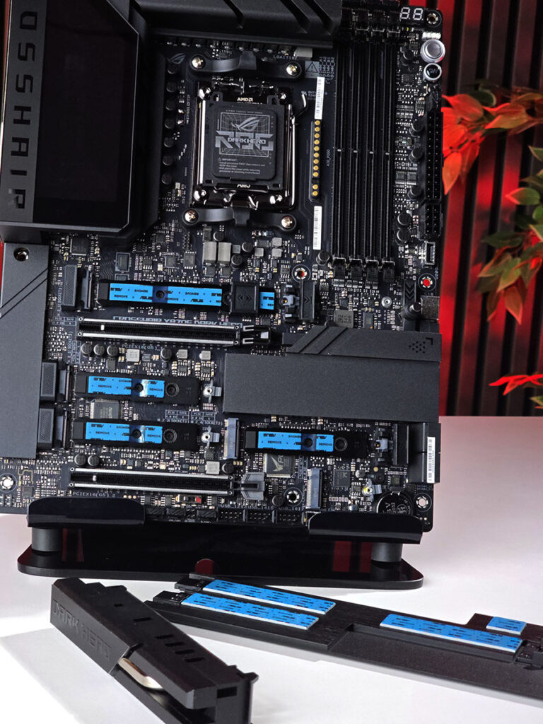 Sa pojavom sve kvalitetnijih i jačih procesorskih rešenja kompanije AMD, racionalno razmišljanje proizvođača matičnih ploča bilo je da ponude Hi-End edicije za AM5 socket. X3D procesori su otišli i korak dalje, kao i funkcije koje ih prate, a da bi sve to stabilno i kvalitetno radilo — ploče su porasle, ali i otežale.