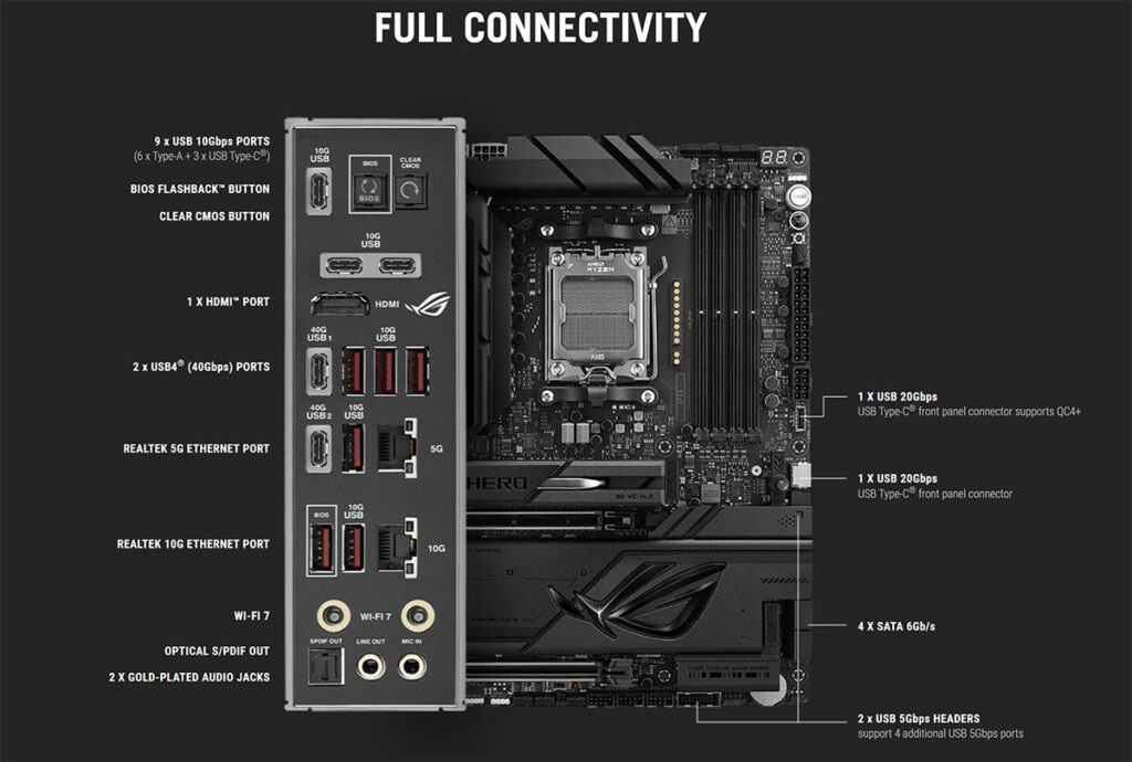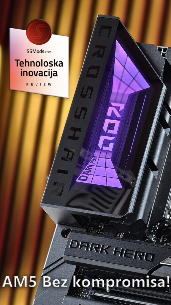 Već na prvi pogled jasno je da su ovo premium ploče namenjene najjačim procesorima — punokrvni čipset, odlične naponske sekcije, kao i najnovije konektivne i druge tehnologije koje jedna ovakva ploča treba da poseduje, uključujući i veliki kolor displej kod Glacial modela. Na testu je danas Dark Hero model, a stigao je i najnoviji Ryzen 7 9850X3D procesor — tako da odmah prelazim na stvar.