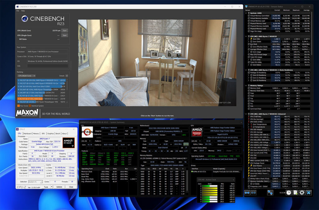 Iako je procesor naslednik 9800X3D modela, boost je u praksi bio bliži 5250 MHz, uz povremene pikove do 5650 MHz tako da je sam dobijeni skor gotovo indentican (~22500poena) kao kod starijeg modela Veći benefit od toga verovatno će osetiti gejmeri, jer X3D odlično skalira u igrama. Za maksimalne performanse i dalje bih preporučio Ryzen 9 9950X3D, koji me je zaista oduševio.