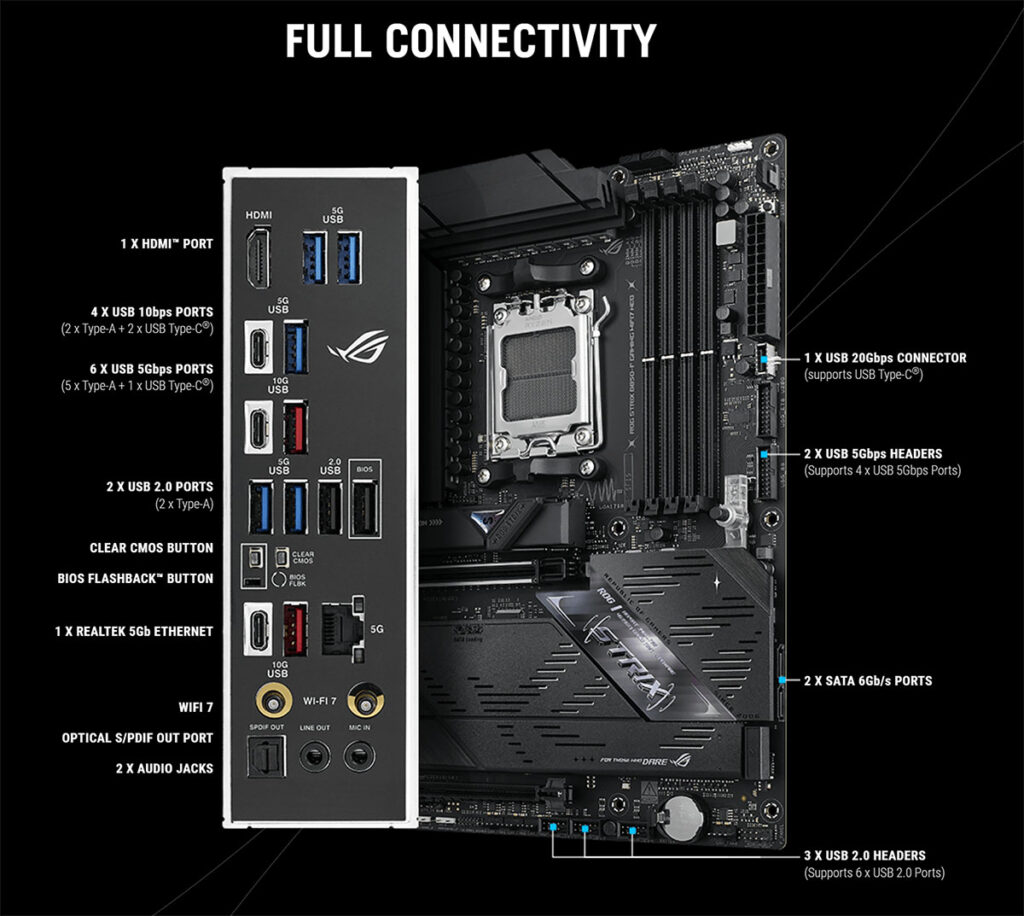 PCIe 5.0 za GPU/SSD, odličnu DDR5 podršku, moderni I/O i jednostavno AM5 platformu sa dugoročnom podrškom. Realno, većini ljudi ne treba više od ovoga. Ako ne jurimo overclock i nemamo potrebe za brdo nakačenih uređaja, onda je ovo idealna ploča.