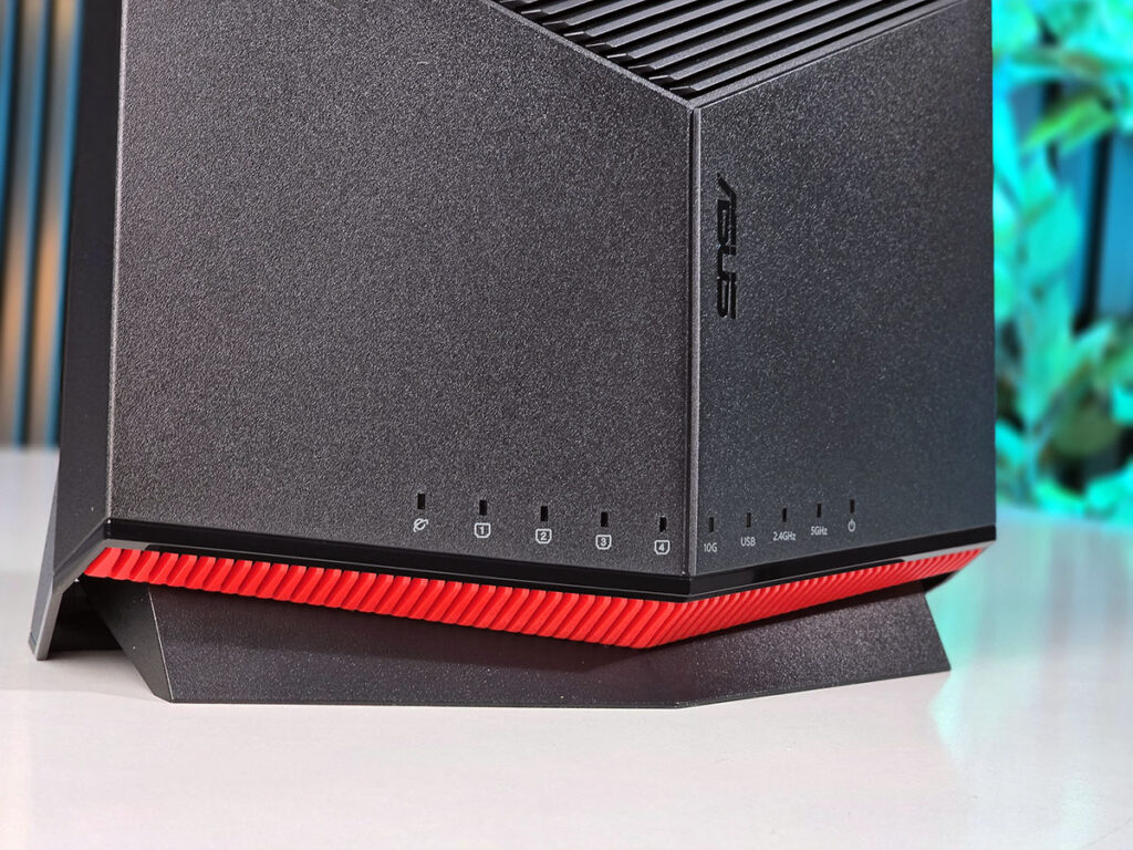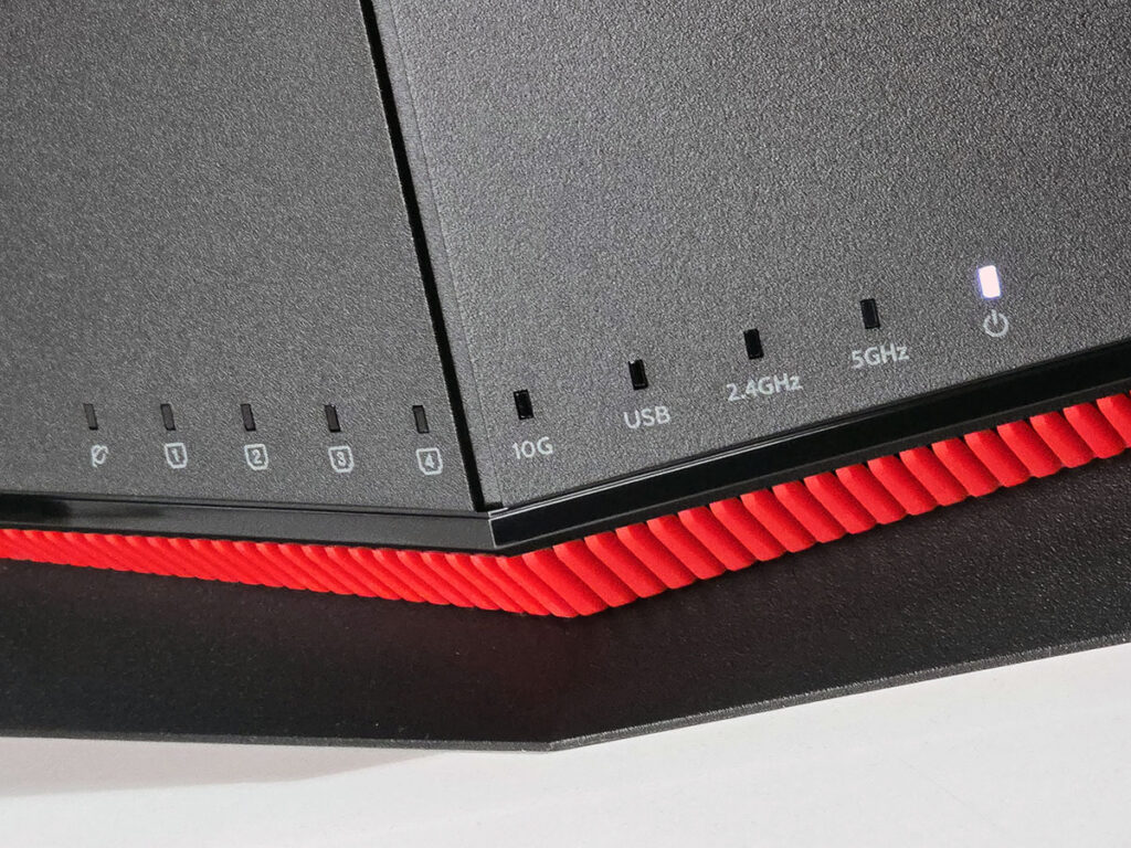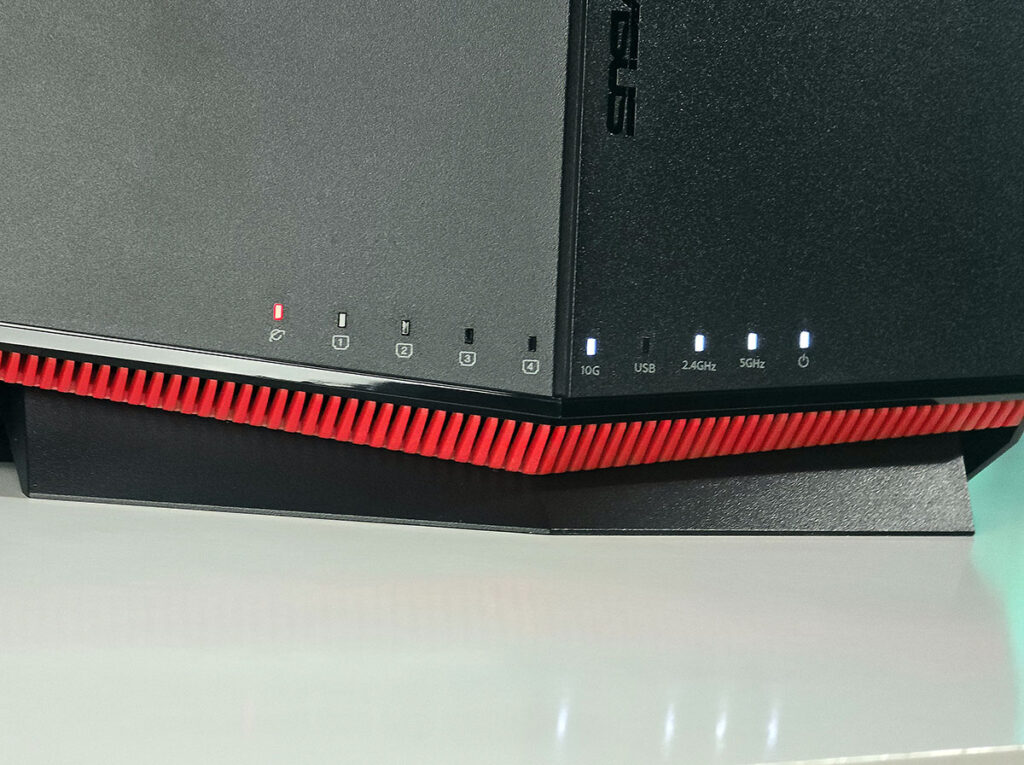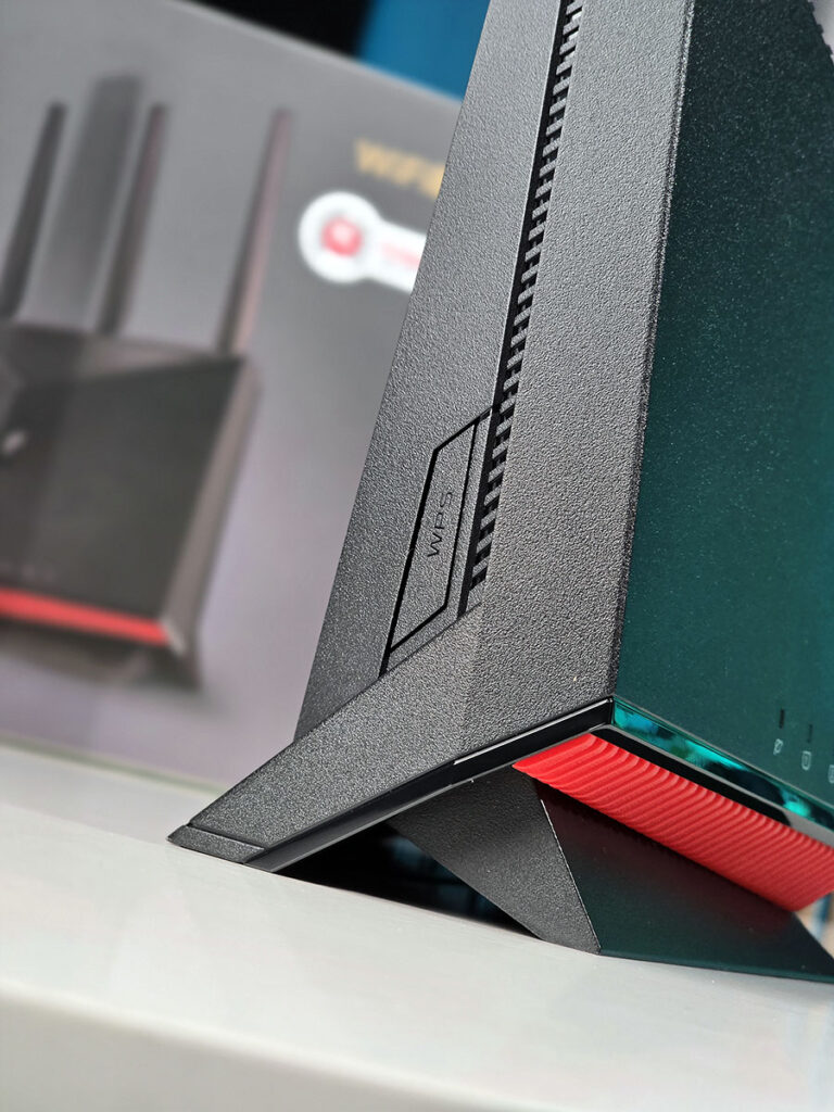 Dizajn je ono nešto što ja inače najviše volim kod ovog rutera i što me i ranije privlačilo. Postavljen je uspravno tako da se može videti lepota dizajna jer ovaj to zaslužuje. Ispod ugaone prednje maske se nalazi crveni detalj koji je ustvari ventilaciona rešetka, na samom rubu između njih dve sa prednje strane su led diode pokazatelja rešima rada.
