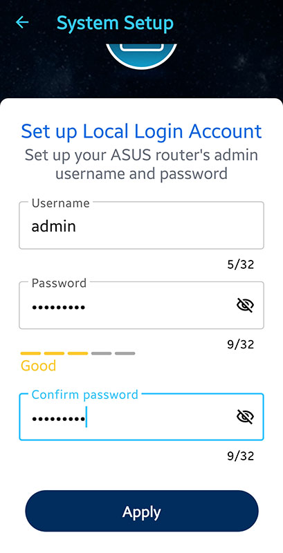 Instalacija i podešavanje se može uraditi kroz ASUS softver preko mobilnog telefona što sam i uradio, instalacija je prošla jednostavno, upisaćete podatke vezano za željeno ima vaše mreže, šifre pristupa itd