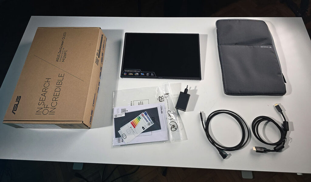 Kada je mobilnost u pitanju, ZenScreen OLED MQ16FC je dizajniran upravo za korisnike koji su često u pokretu. Težina monitora iznosi oko 650–680 grama, dok je debljina manja od 1 cm, što znači da bez problema može stati u torbu zajedno sa laptopom. U pakovanju dolazi i pametna zaštitna futrola koja ujedno služi kao postolje, pa je postavljanje monitora na sto brzo i jednostavno.