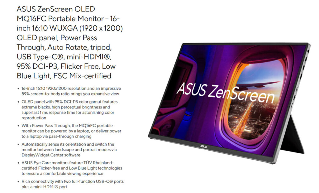 Prenosivi monitori postaju sve popularniji dodatak modernim laptopovima, posebno kada je potrebno proširiti radni prostor na putu ili u mobilnom okruženju. Upravo u toj kategoriji kompanija ASUS već godinama ima veoma jaku ZenScreen liniju uređaja, a model ZenScreen OLED MQ16FC predstavlja jedan od zanimljivijih premium predstavnika.