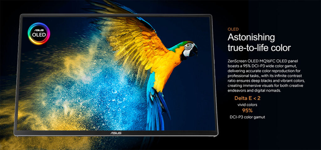 ASUS sa modelom ASUS ZenScreen OLED MQ16FC jasno cilja korisnike koji žele maksimalan kvalitet slike u prenosivom formatu. OLED panel donosi vrhunski kontrast, veoma živopisne boje i odlične uglove gledanja, dok tanak i lagan dizajn čini ovaj monitor savršenim saputnikom uz laptop na putu ili u mobilnom radnom okruženju. Uz fleksibilne opcije povezivanja putem USB-C i mini-HDMI konektora, kao i praktičnu Power Pass-Through funkciju, ZenScreen OLED MQ16FC se pokazuje kao veoma svestrano rešenje – bilo da vam je potreban dodatni ekran za produktivnost, multimediju ili kreativni rad.
