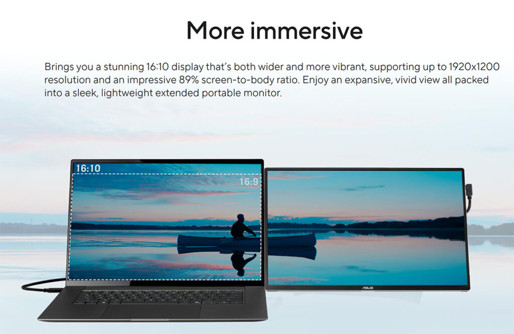 U pitanju je 16-inčni prenosivi monitor sa OLED panelom i WUXGA rezolucijom od 1920 × 1200 piksela, uz praktičan 16:10 odnos stranica koji pruža nešto više vertikalnog prostora u odnosu na klasične 16:9 ekrane. Upravo taj dodatni prostor je veoma koristan za produktivan rad – pregled dokumenata, uređivanje fotografija, programiranje ili rad u više prozora.