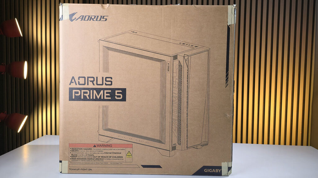U klasičnoj braon kutiji zatičemo AORUS gejming kućište MID Tower segmenta. Ovaj model kućišta ne možete naći u odvojenoj prodaji jer je isključivo namenjen kao ceo eko sistem. Međutim krase ga sva najmodernija rešenja u IT Case industriji.