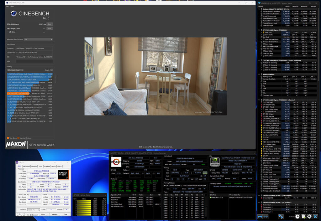 Cinebench R23 pokazuje da je CPU stabilan, temperature su zaista impresivno niske što mi govori da ovaj AIO hladnjak radi više nego odlično. Rezultat koji dobijam je odgovarajući za model 9800X3D, a sva jezgra su boostovala na maksimalnih 5216MHz.