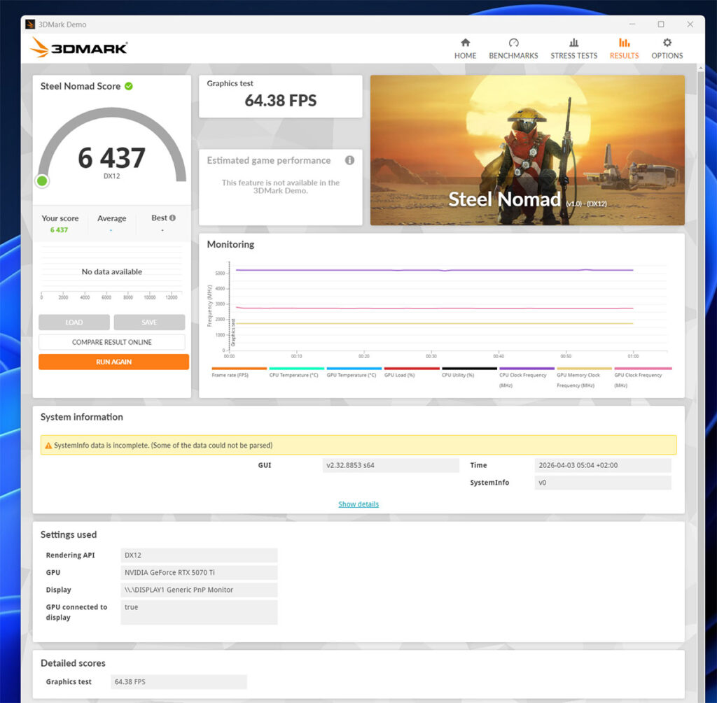 3DMark test se radi u 4K rezoluciji i naravno da je za ovakav PC sistem ovaj skor i odgovarajući, sve ukazuje na dobar gaming u 4K sa minimum 60FPS u raster modu.