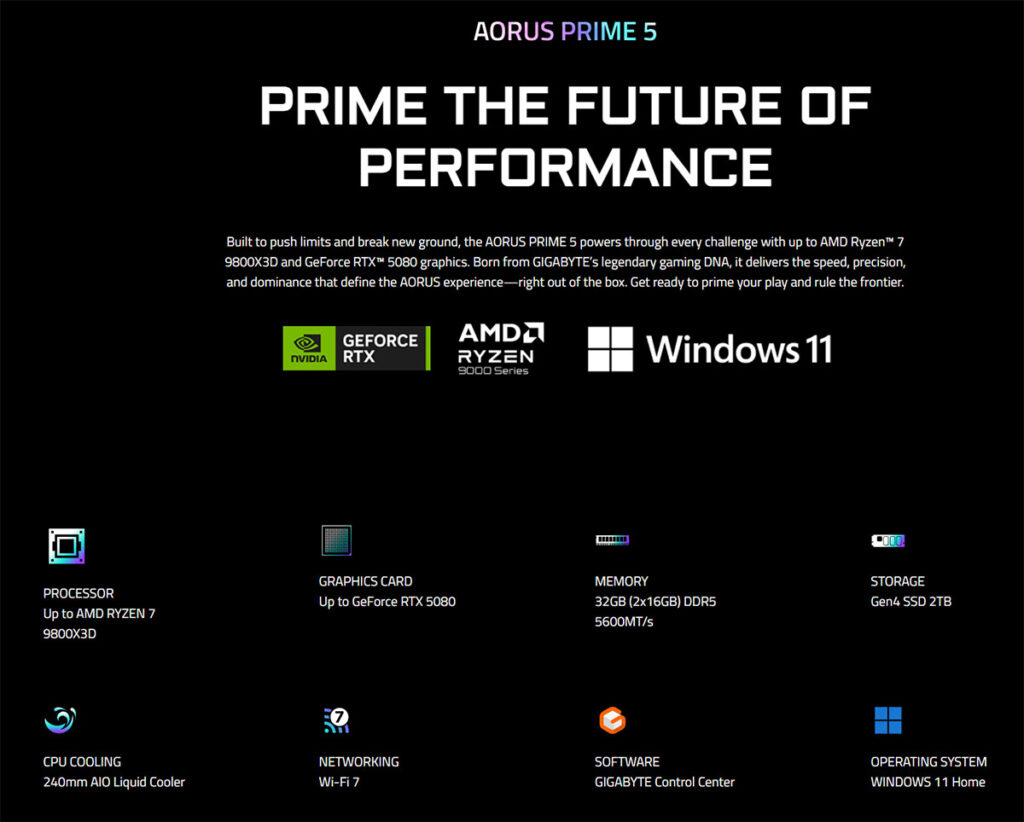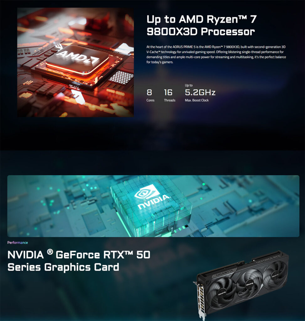 – AMD Ryzen™ 7 9800X3D (8MB Cache, up to 5.2GHz)