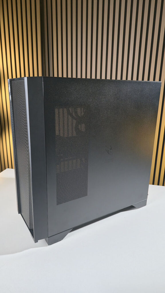 Bočna desna strana je od punog metala, međutim imamo perforaciju na mestu gde bi unutar kućišta mogli montirati 2x 120mm ventilatore što ukazuje na dodatne mogućnosti instalacije hladnjaka u cilju poboljšanja ventilacije unutar kućišta. Sa strane hardvera imamo naravno stranicu od kaljenog stakla i obe bočne strane se skidaju i postavljaju uz pomoć dva šrafa montirajući sa zadnje strane kućišta. Zadnja strana je poprilično perforirana, imamo klasičan ATX layout gde je napajanje namešteno u donjoj zoni i odvojenoj komori.