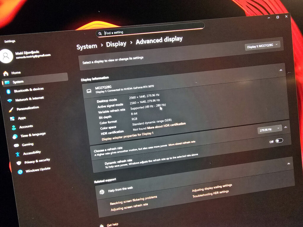 Još jedna velika razlika je i u brzini osveženja monitora, Aorus model ima 500Hz dok je Gaming model deklarisan na 280Hz. Koliko je ovo stvarno bitna stavka u već velikim brzinama videćemo kasnije na testu.