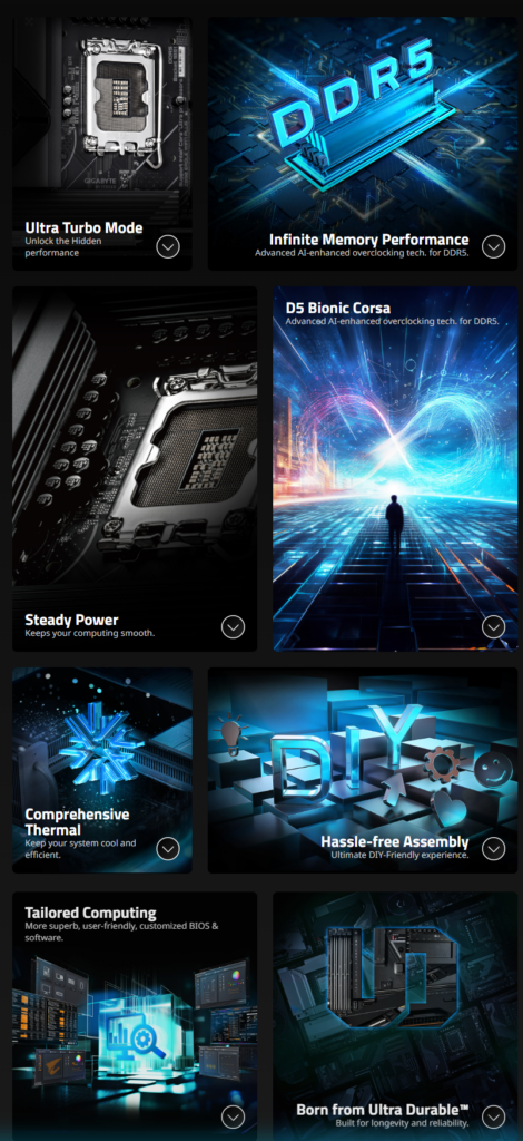 Z890 PLUS serija kompanije GIGABYTE ide dalje od samih tehničkih specifikacija, uvodeći dubinske optimizacije sistema dostupne svakom korisniku. Ekskluzivni Ultra Turbo Mode omogućava vlasnicima procesora Intel Core Ultra 200S Plus Series (K-SKU) da jednim klikom otključaju do 40% više performansi* kroz tri progresivna nivoa: