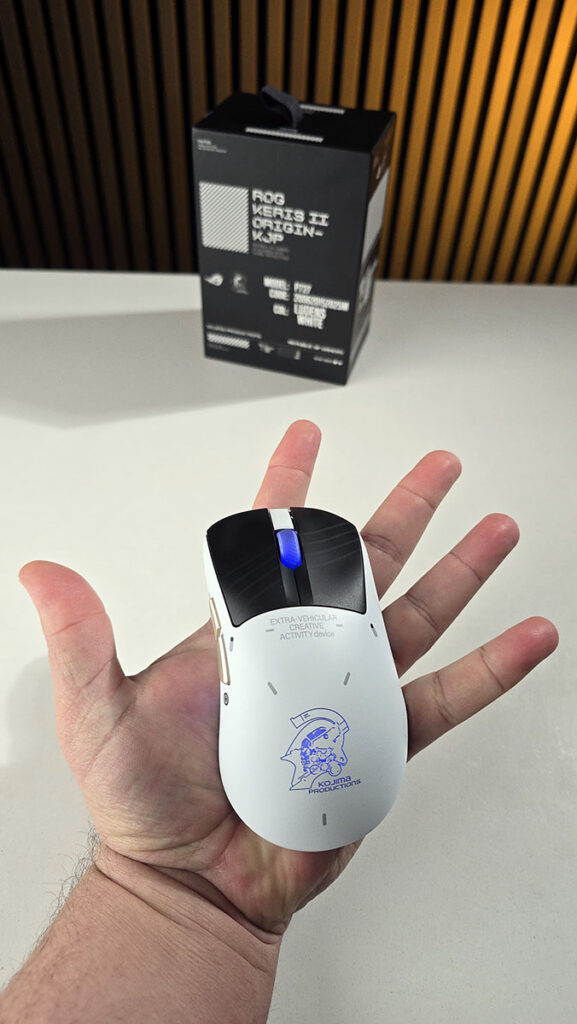EEEEE sad dizajn, gabaritno ovaj KOJIMA edition je identičan kao i originalni brat, međutim ovde se poprilično radilo na estetici! Spoj bele i crne plastike uz detalje koji su ispisani i oni koji su dodatno RGB osvetljeni jednostavno kidaju. KOJIMA logo iako uglavnom biva prekriven dlanom, ovde kao da zahteva da miš koristimo vrhovima prstiju kako bi bio stalno vidljiv.