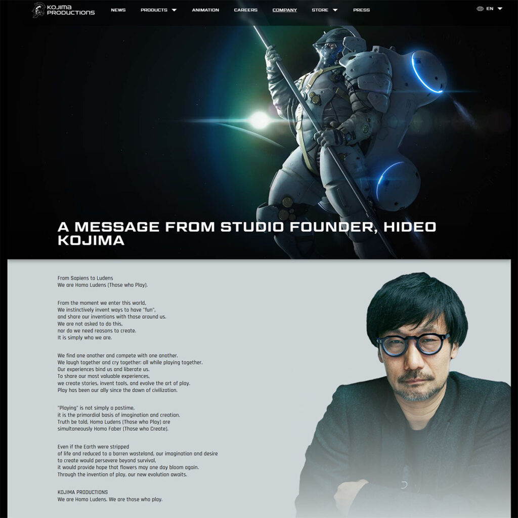 Cela ova linija je u stvari orijentisana ka LUDENS ideologiji, a kako i sam Hideo Kojima, osnivač ovog studija, navodi da smo svi mi HOMO LUDENS ili u prevodu „oni koji se igraju„.