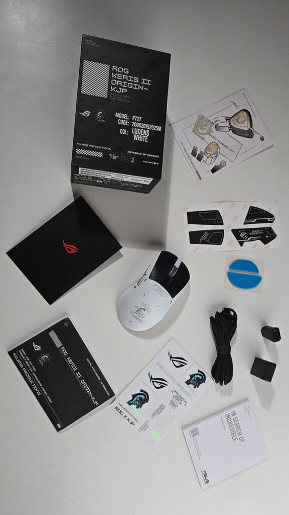 Na prvu, a bogami i drugu ruku čim se otpakuju, pa i samo pakovanje ukazuje na drugačiji proizvod od standardnog ROG! Kako i da ne bude, jer ovo je ipak SPEC edition serija. Pakovanja su obimna, sve potrebno za instalaciju i rad je tu. Dodatni pamfleti koji objašnjavaju kako je došlo do dizajna u vidu skeča na papiru meni mnogo znače, jer i ja sve svoje projekte započinjem uglavnom na ovaj način, to ukazuje na talentovanost KOJIMA studija i detaljan pristup kooperativnom dizajnu ovih periferija.